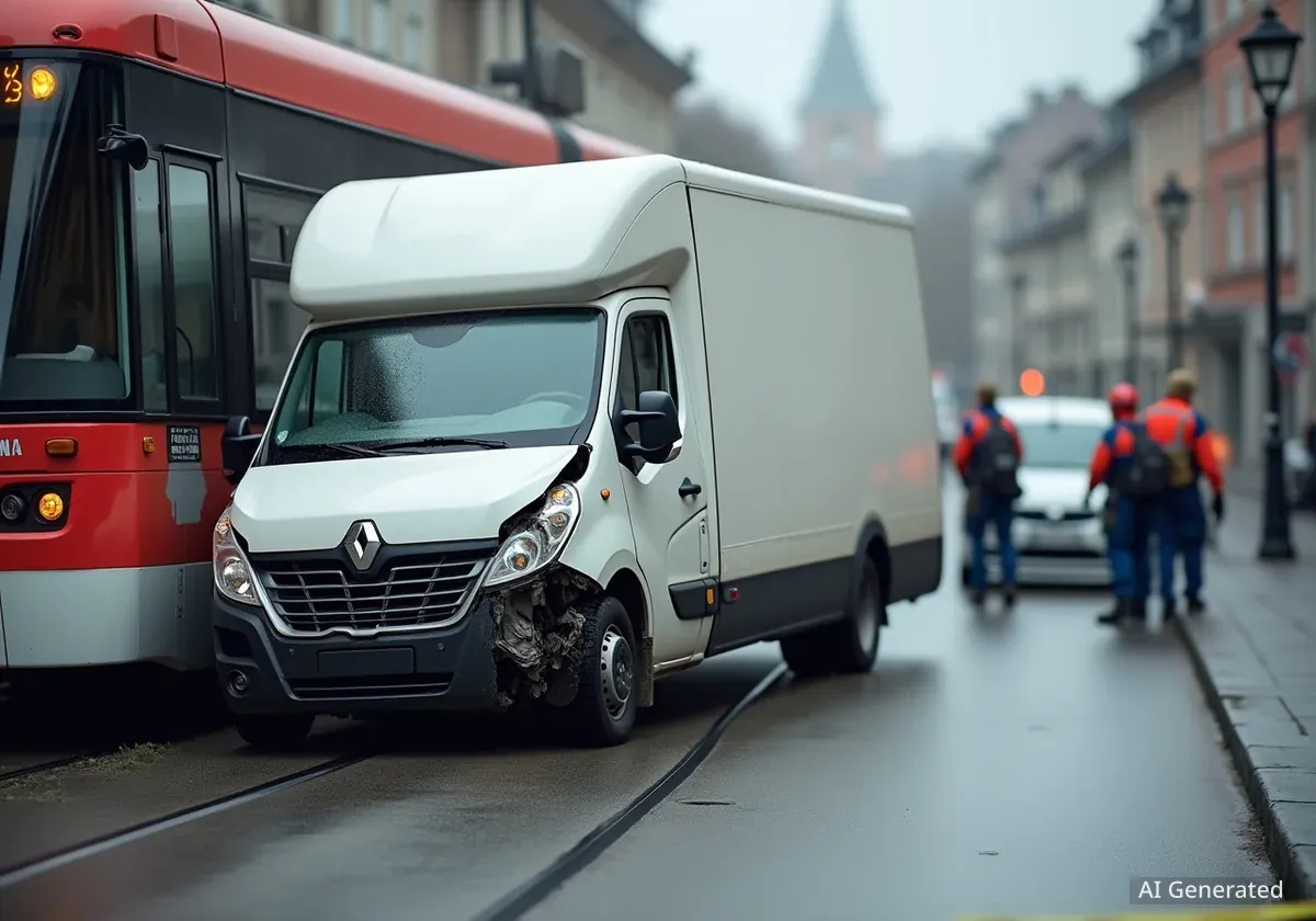 Ein Lieferwagen kollidierte in Muttenz mit einem Tram der Linie 14, nachdem der Fahrer ein rotes Lichtsignal missachtete. Zwei Personen wurden verletzt.