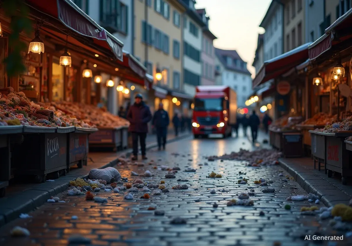 Ein Lastwagen ist in der Basler Rheingasse in mehrere Marktstände gerollt und hat den Fahrer verletzt. Die Polizei schliesst eine vorsätzliche Tat aus. Die Adväntsgass bleibt geöffnet.